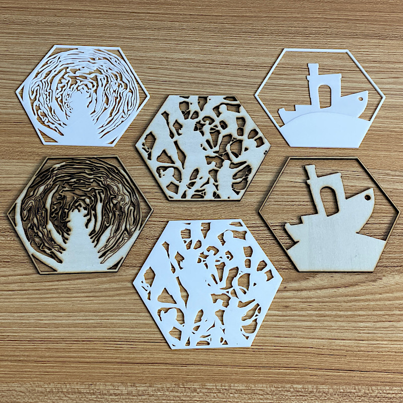These are hexagons that can be 3D printed and laser cut. I created them for the following guides: